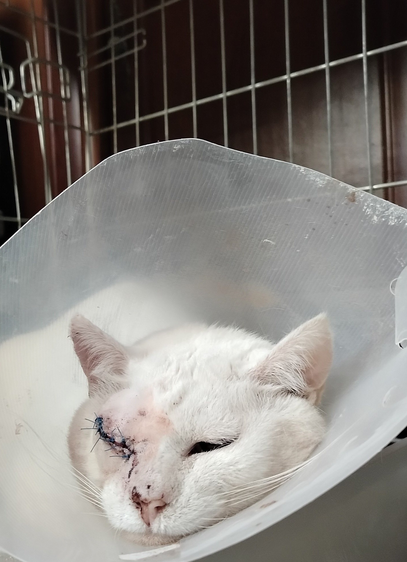 Kiedyś piękny, dziś nic nie wart i porzucony i zapomniany. Łapa uszkodzona, ropiejąca, kot kulawy. W uszach świerzb. Dziesiątki kleszczy. Chudy. Ropa i krew z nosa. W błękitnych oczach strach i brak nadziei. Dwunastoletni koci senior zdany tylko na siebie. Połamane zęby stany zapalne kamień i ból przy każdej próbie jedzenia. Dzięki osobom które zauważyły jego cierpienie i przywiozły go do nas ma szansę na godną jesień życia bez bólu strachu i cierpienia bardzo prosimy was o pomoc w opłaceniu leczenia naszego nieoszlifowanego jeszcze Brylancika.