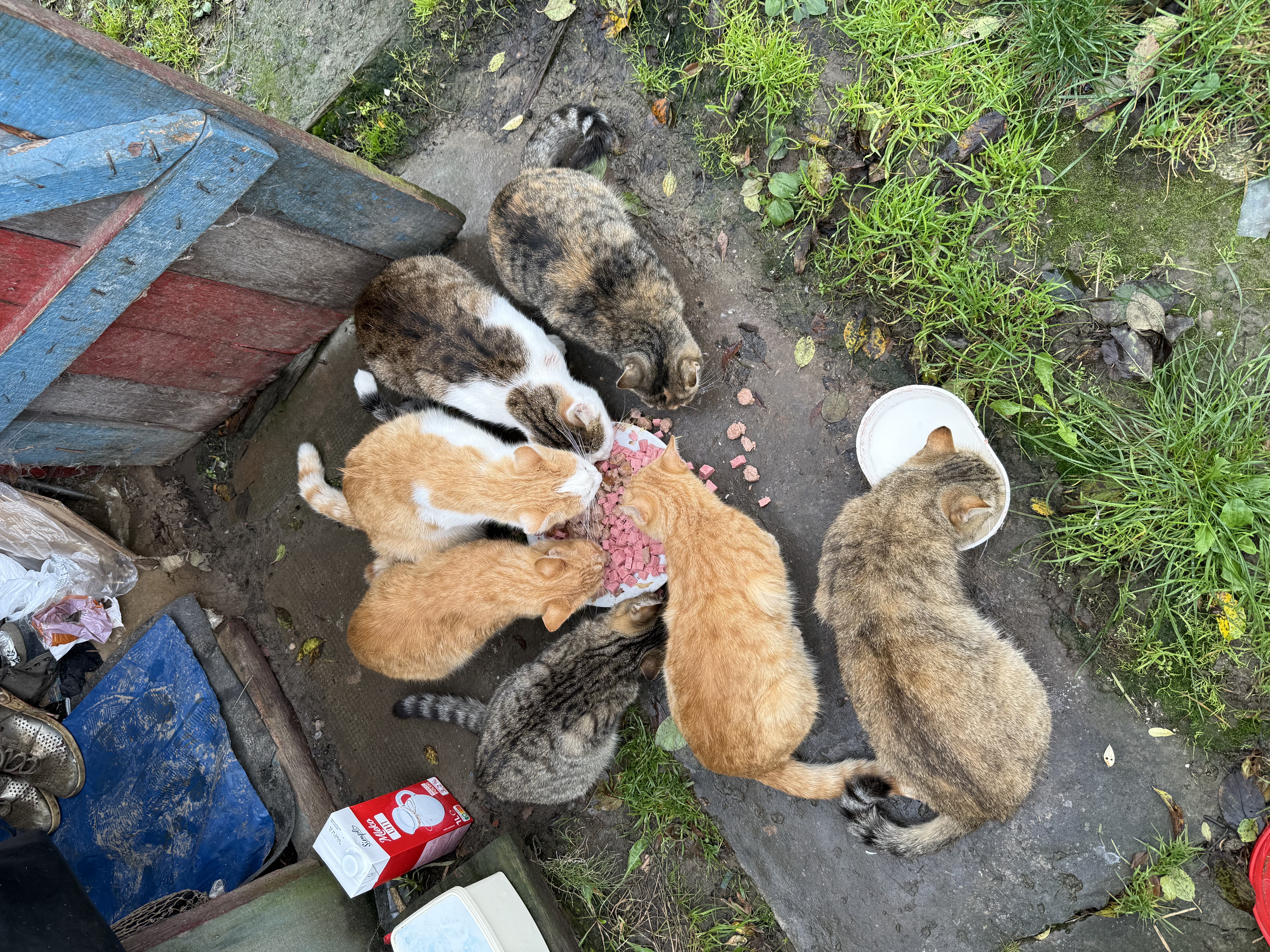 Na jednej z działek ROD od lat żyje grupa kotów, którymi opiekuje się starsza pani – emerytka, dla której ogródek i zwierzęta są całym światem. Większość kotów to zwierzęta podrzucane, porzucone, często w kiepskim stanie. Mimo bardzo skromnych środków nigdy nie potrafiła zostawić ich bez pomocy. Przez lata warunki były trudne: stary, rozpadający się domek, brak miejsca na zimę, niewystarczająca ilość jedzenia. Dopiero w ubiegłym roku, dzięki wsparciu ludzi dobrej woli, udało się wybudować nowy domek, przygotować budki styropianowe i zapewnić kotom kilka miesięcy pożywienia. Aż 90% kotów przebywających na działce jest dziś wysterylizowanych – to ogromny sukces i dowód na to, jak ważna jest ta opieka.