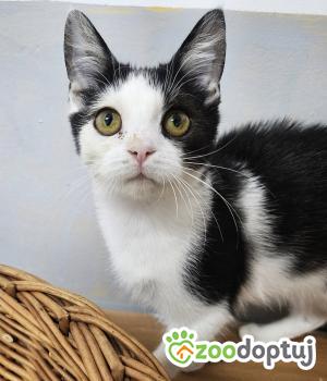 Szaza to 3 miesięczna koteczka o uroczym biało-czarnym umaszczeniu i charakterze, w którym naprawdę trudno się nie zakochać. Już od pierwszych chwil na kociarni wzbudza sympatię wszystkich odwiedzających