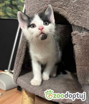 Ma艂y kocurek, zabawny, radosny, uwielbiaj膮cy sie bawi膰.