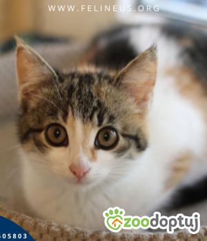 Sentino to malutka koteczka o puszystym futerku barwy trikolor. Kotka urodziła się we wrześniu 2025 roku. Jest nieśmiała i nieco płochliwa, ale z każdym dniem staje się coraz bardziej odważna. Dobrze się czuje w towarzystwie innych kotów. Chętnie bawi się z siostrą. Dla tej kociej dziewczynki szukamy domu gdzie opiekun uszanuje jej niezależność i da czas na aklimatyzację i przyzwyczajenie. Wskazane zabezpieczenia okien i balkonu.