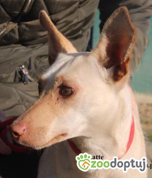 Latte to sunia o ciekawym umaszczeniu porannej kawki latte. Jest niewielka, o delikatnej budowie ciała i krótkim ogonku. Cieszy się na widok opiekuna i choć obecne warunki ja nieco przerastają, jej pogodne usposobienie pozwala jej na otwarcie się na kontakt z człowiekiem, chce być blisko, nadstawia się na głaski. Szukamy kochającego domku dla suni.