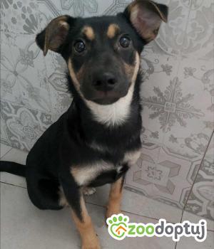 Jest czarno-brązową sunią, która wyrośnie na średniej wielkości psa.